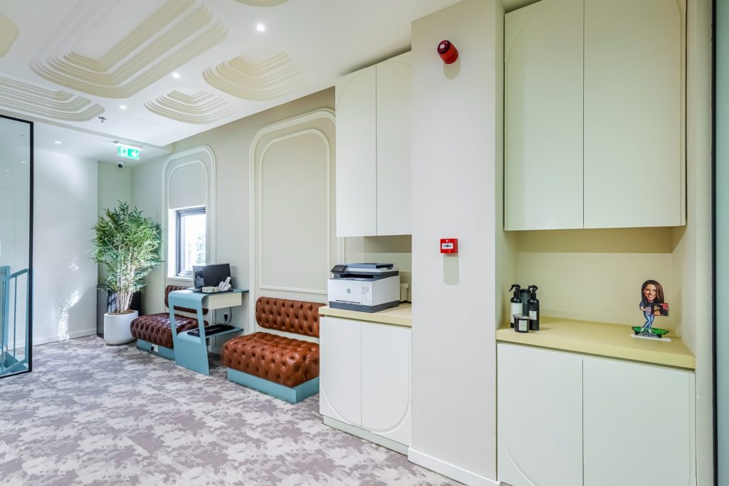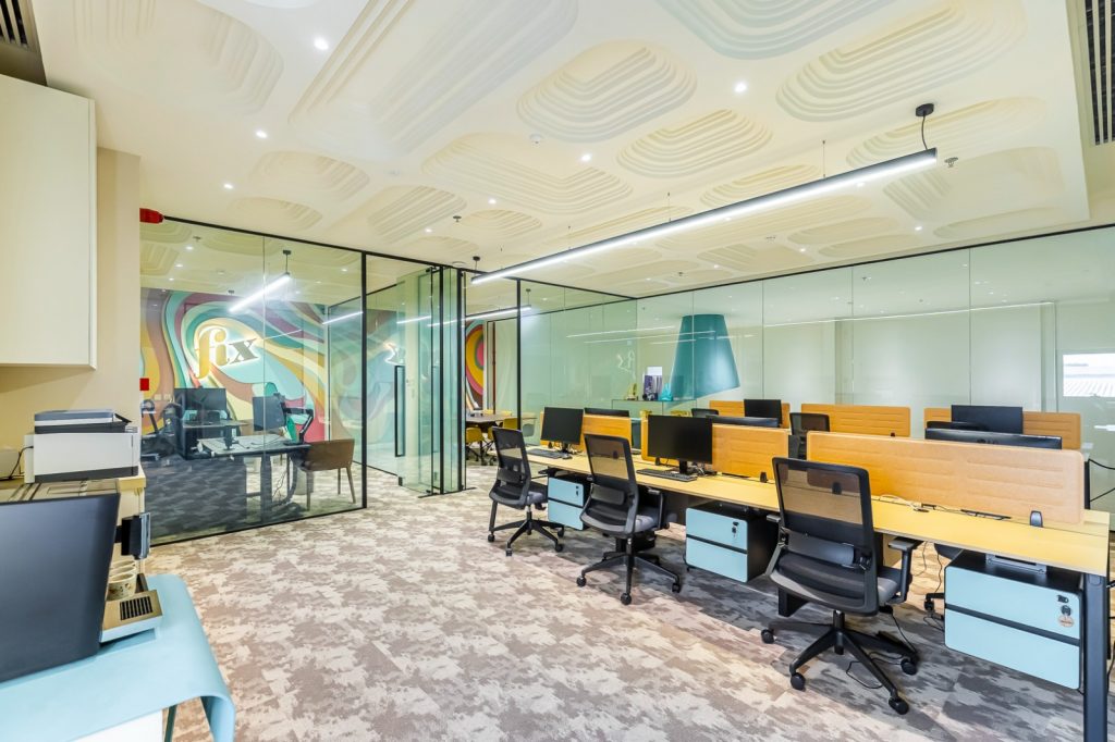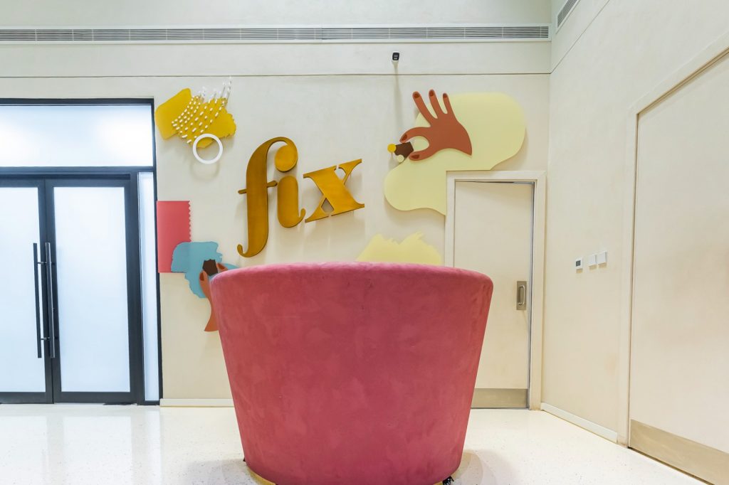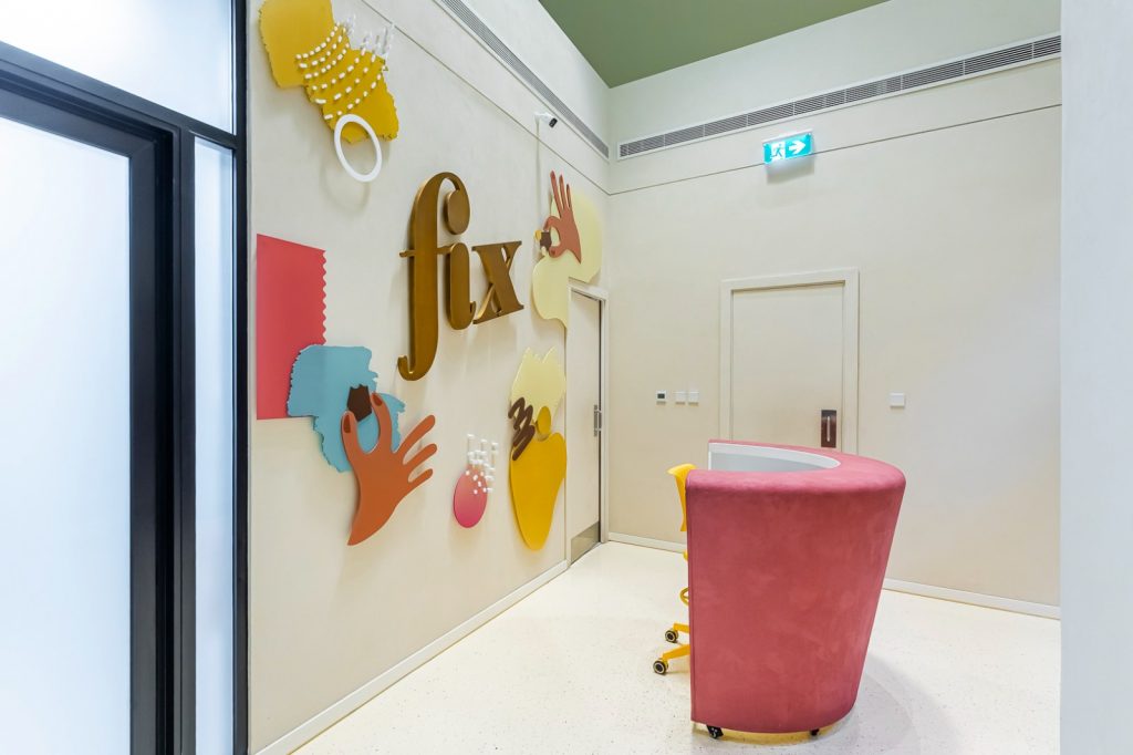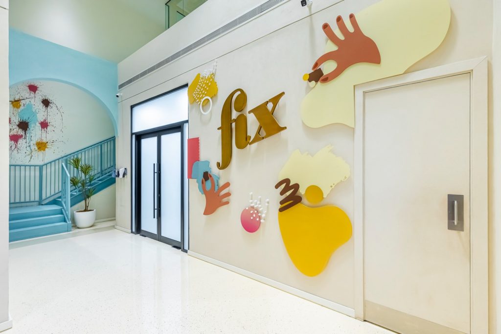 Fix Dessert Chocolatier, the original Dubai chocolate, engaged us to design their new office and kitchen spaces in line with their premium identity. Our team created a professional yet playful office environment with vibrant tones and clean lines. For the kitchen, we focused on durability and functionality, ensuring a practical setup for day-to-day operations in a commercial setti