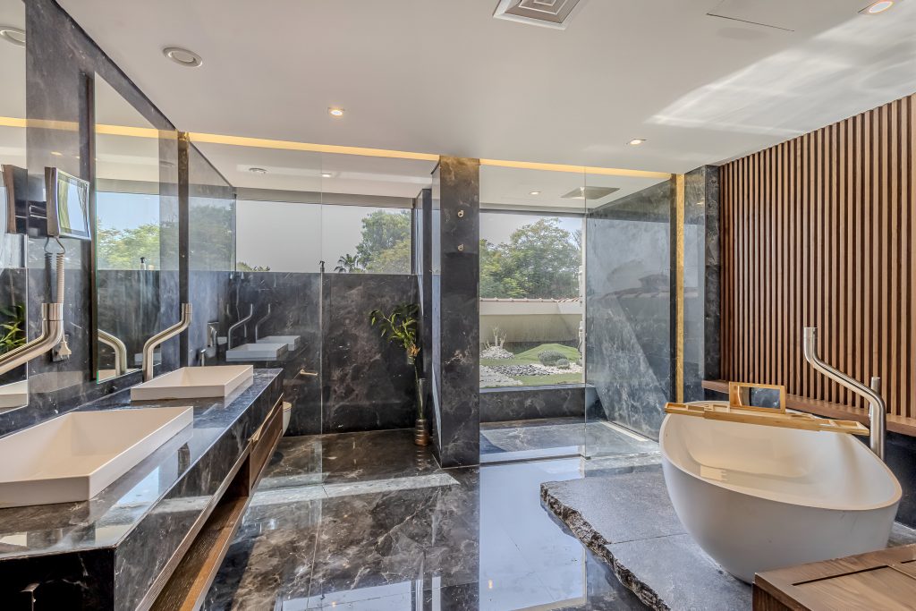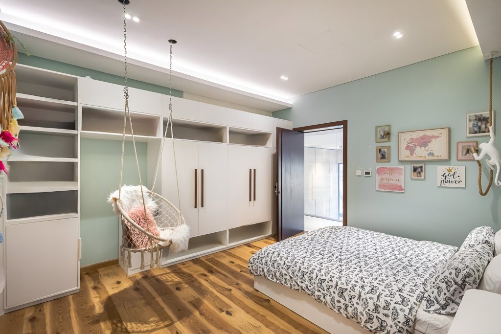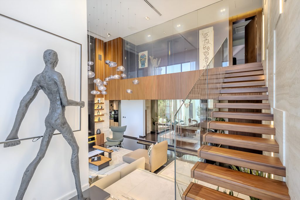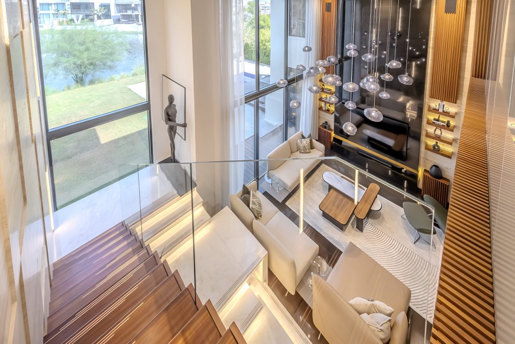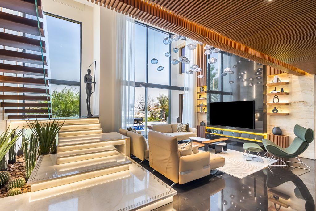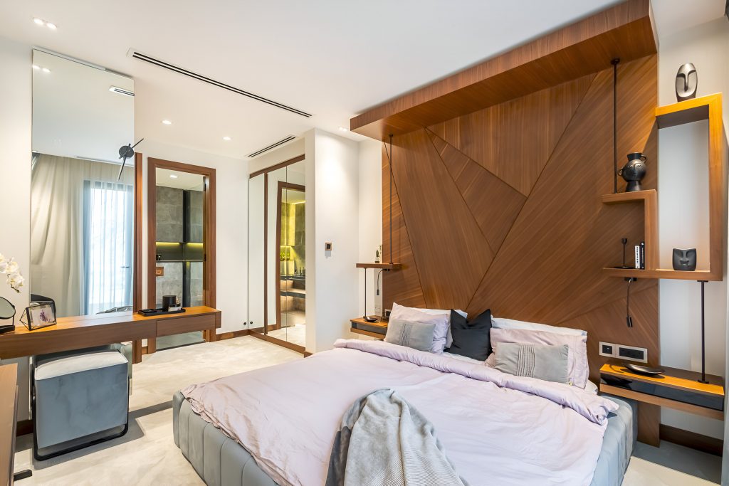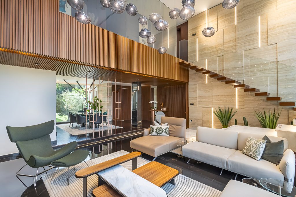 Our client required a complete project spanning all of our services to transform the property into a contemporary indoor and outdoor living space. Our design team gave the outdated 4 bedroom villa a full overhaul, with structural work, landscaping, interior design and furnishings all involved in this project. From our consultation with the client, we gathered information about style preferences and functionality priorities to incorporate this into our design. Key features included installing a modern kitchen island for convenient food preparation, distinctive wooden panelling throughout the interior and a stunning floating staircase.