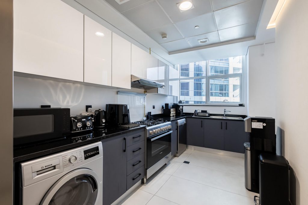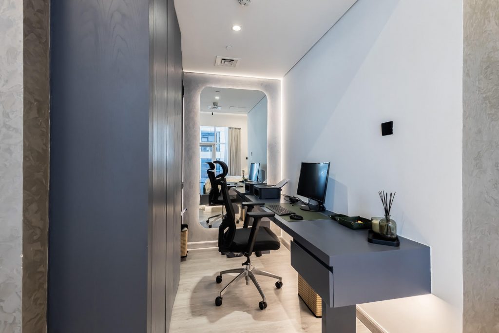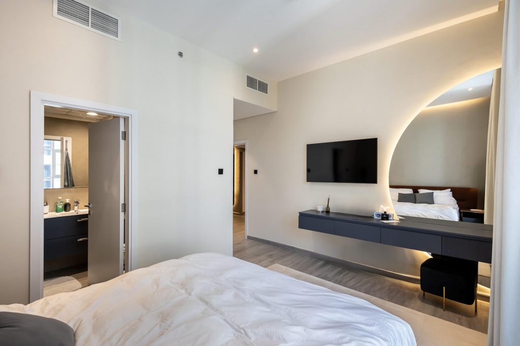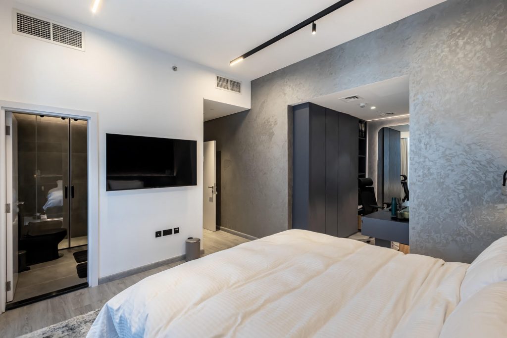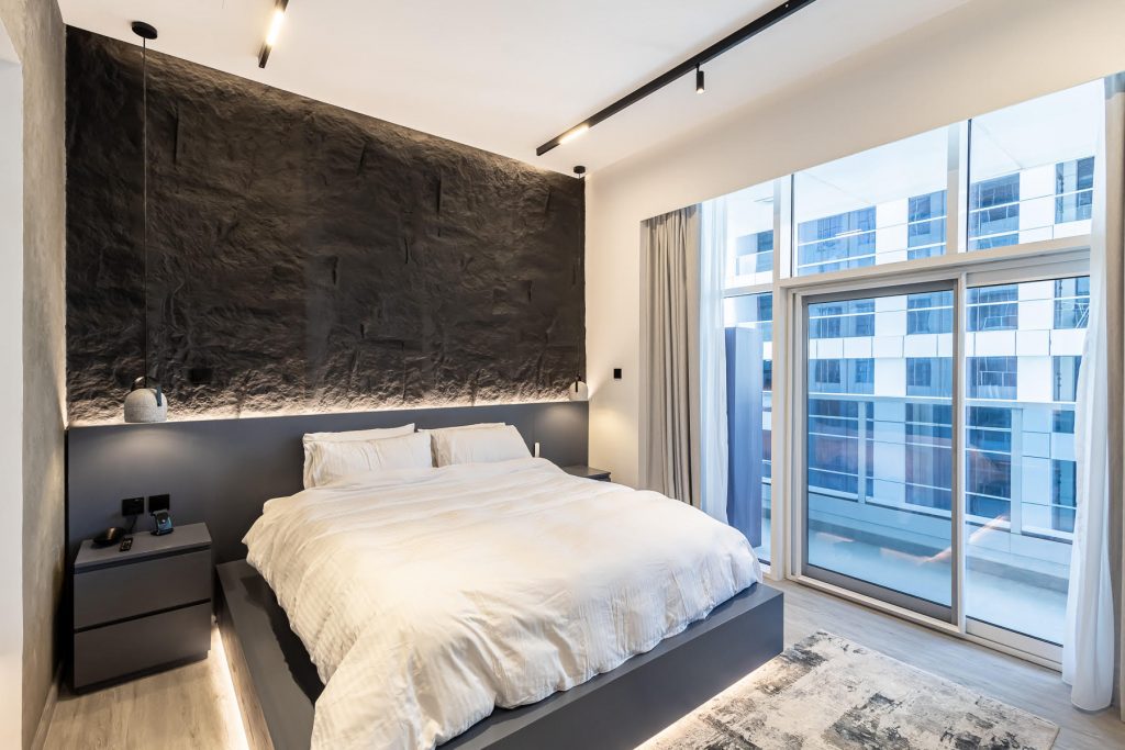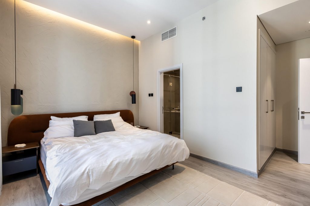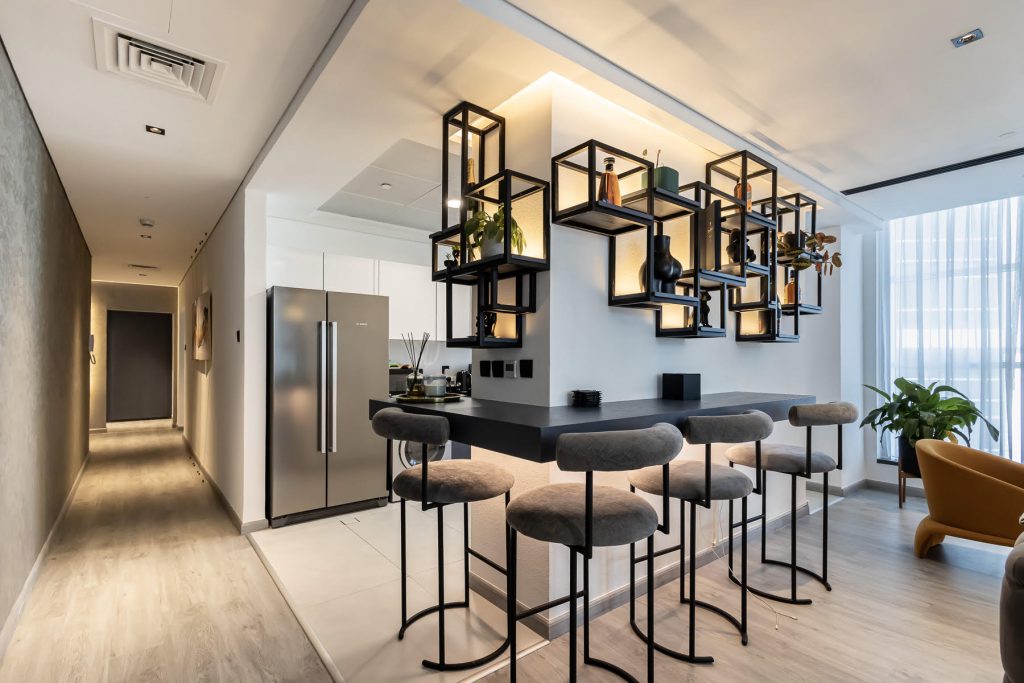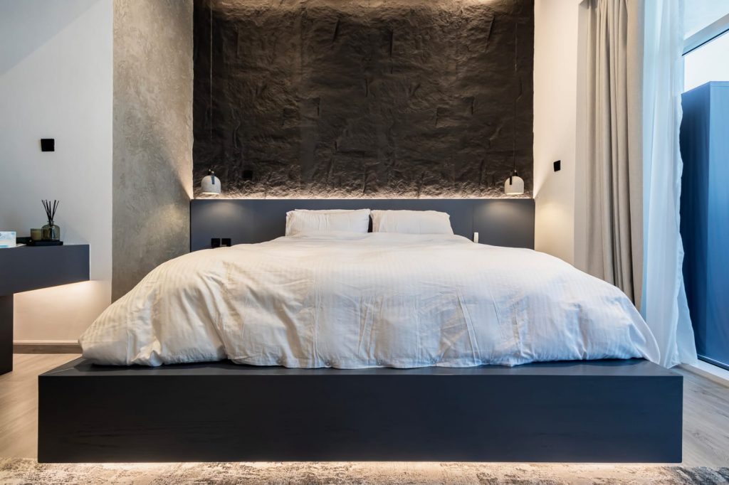 Our client desired an interior refresh for their 2 bedroom apartment, including new furnishings to enhance the comfort and style of the space. The interior design project entailed creating an in-trend color combination in the living space, using contrasting colors to create a more intimate living space. We selected high-end, stylish furnishings, including an expansive seating area to utilise the available space. In the bedrooms where the space was more limited, we chose space optimizing fittings and a light color scheme to brighten the rooms.